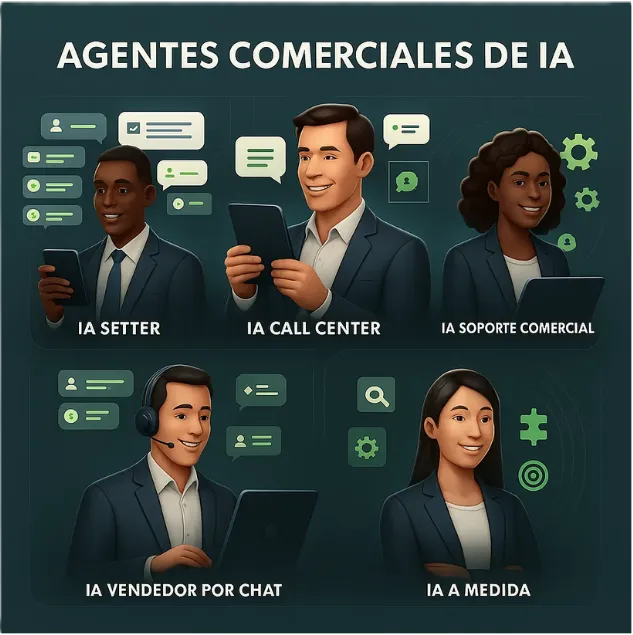 Implementamos Agentes de Inteligencia Artificial que prospectan, atienden llamadas, venden por chat y dan soporte a tus clientes, como un equipo humano… pero más rápido, más barato y siempre disponible.
